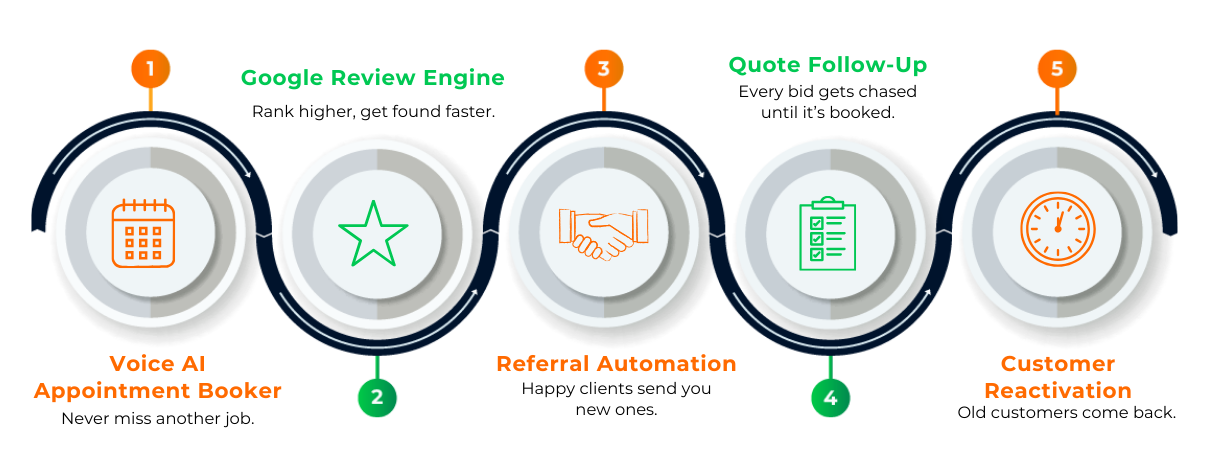 Voice AI answers 24/7 → books jobs instantly (no human needed).